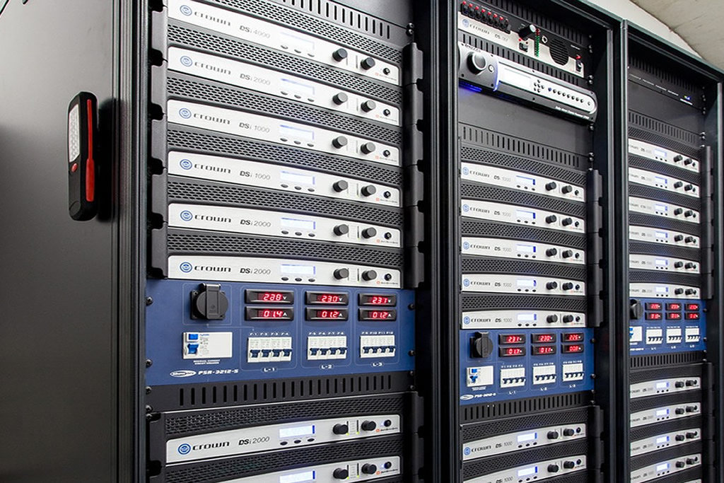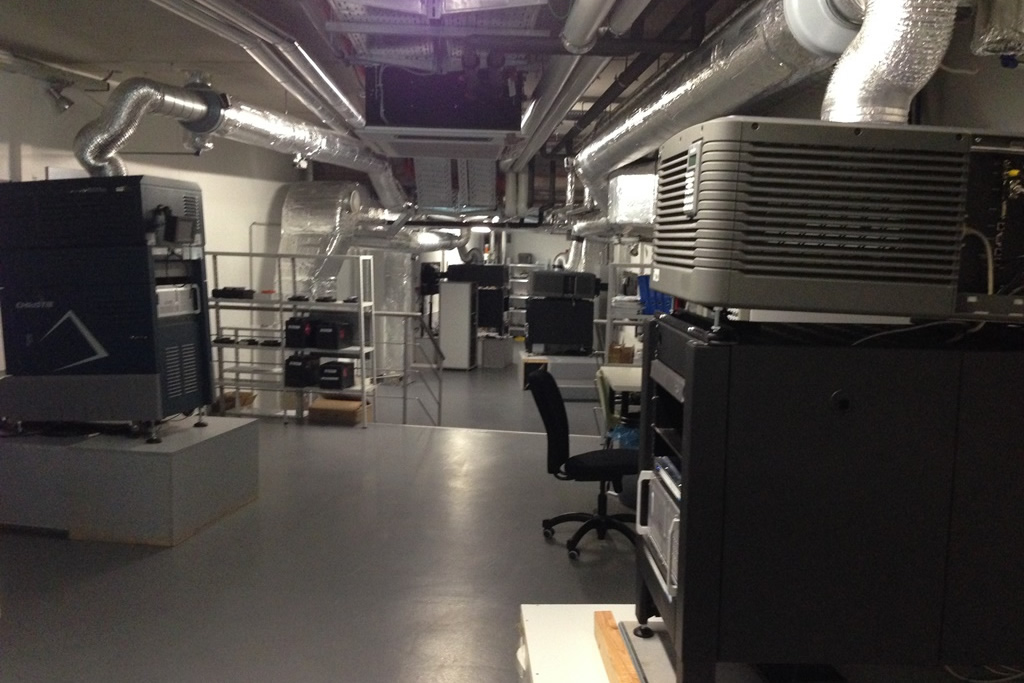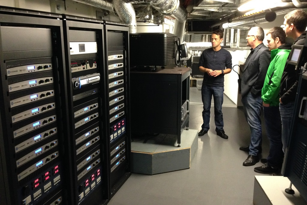 Mindestens so beeindruckend wie dieses Sounderlebnis, war es auch hinter den Kulissen. Der technische Aufwand für ein Kinoerlebnis dieser Art ist enorm. Wenn ein Beamer so groß ist, dass man ihn auch prima als Couchtisch verwenden könnte oder 19 Zoll Racks voll gestopft mit Verstärkern sind, erkennt man, dass weit aus mehr als nur Beamer, Leinwand und Lautsprecher dahinter stecken.