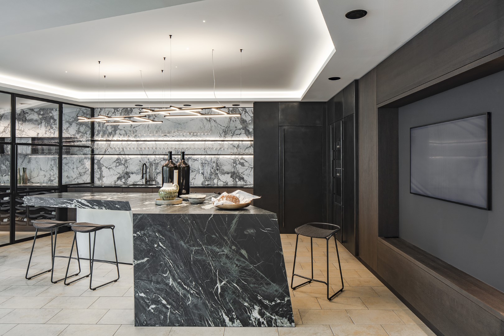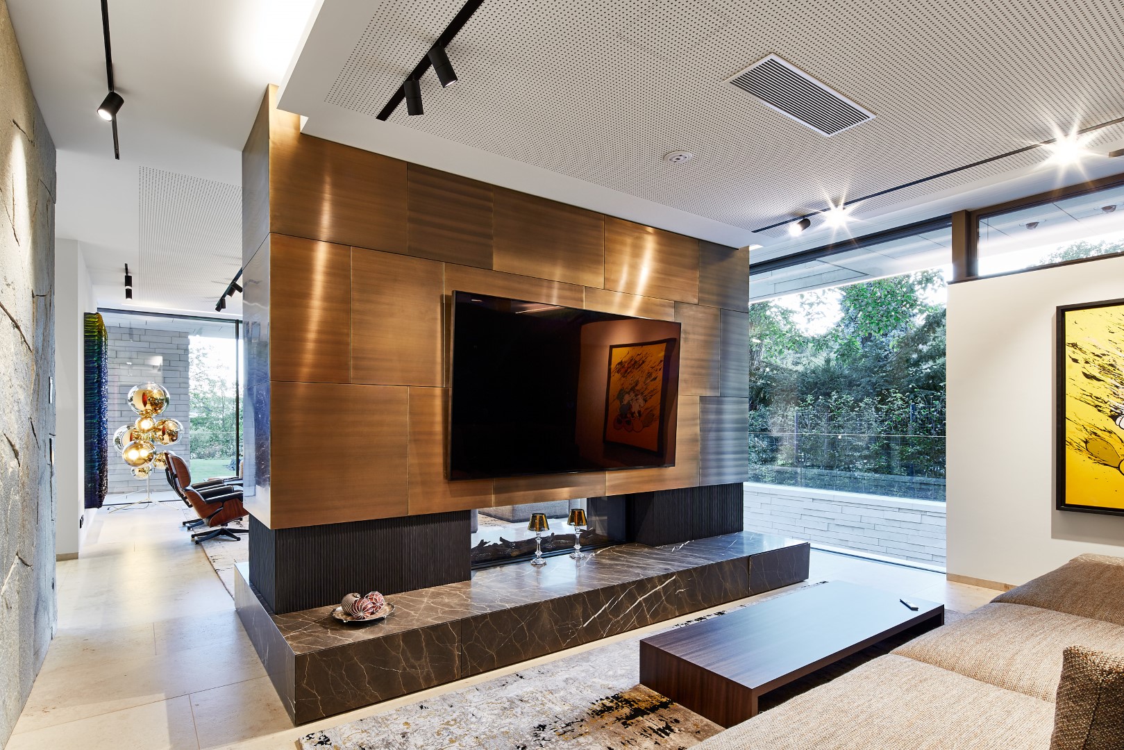 unsichtbares Wohnraumkino mit zwei unterschiedlichen Hörzonen eingebaut in der Trockenbaudecke - © Möblierung: MILD GmbH & Co KG