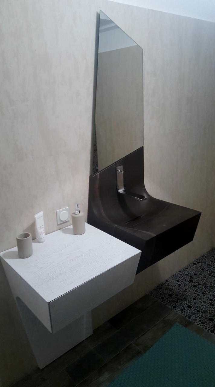 Der Betonkörper, der in verschiedenen Ausführungen und Farben erhältlich ist, erfüllt die Forderung nach einem sauberen und diskreten Design ohne Kompromisse bei der akustischen Qualität.