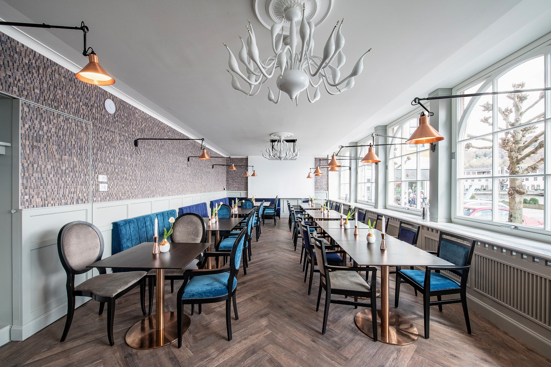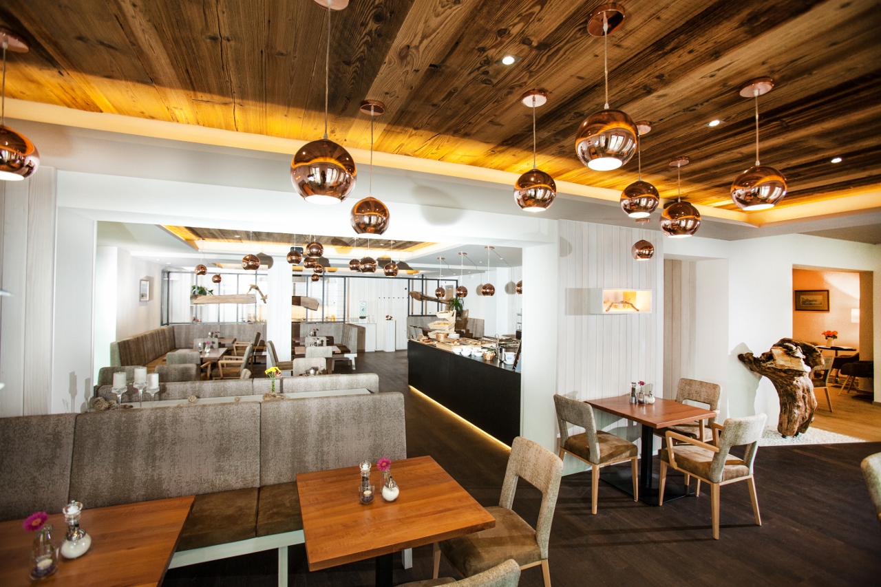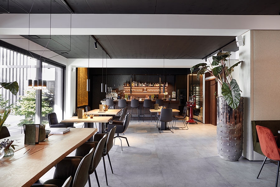 Gastro / Bar - Bereich, architektonisch unauffällige Würfellautsprecher mit versteckten Subwoofern