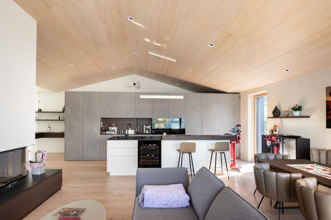 unsichtbares Wohnraumkino integriert in die Holzdecke