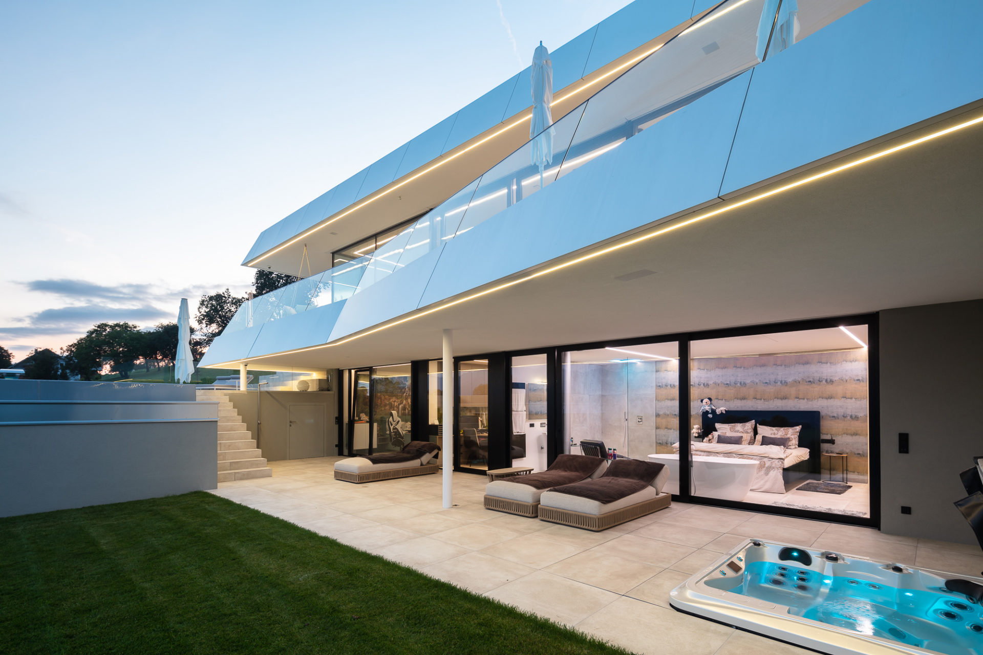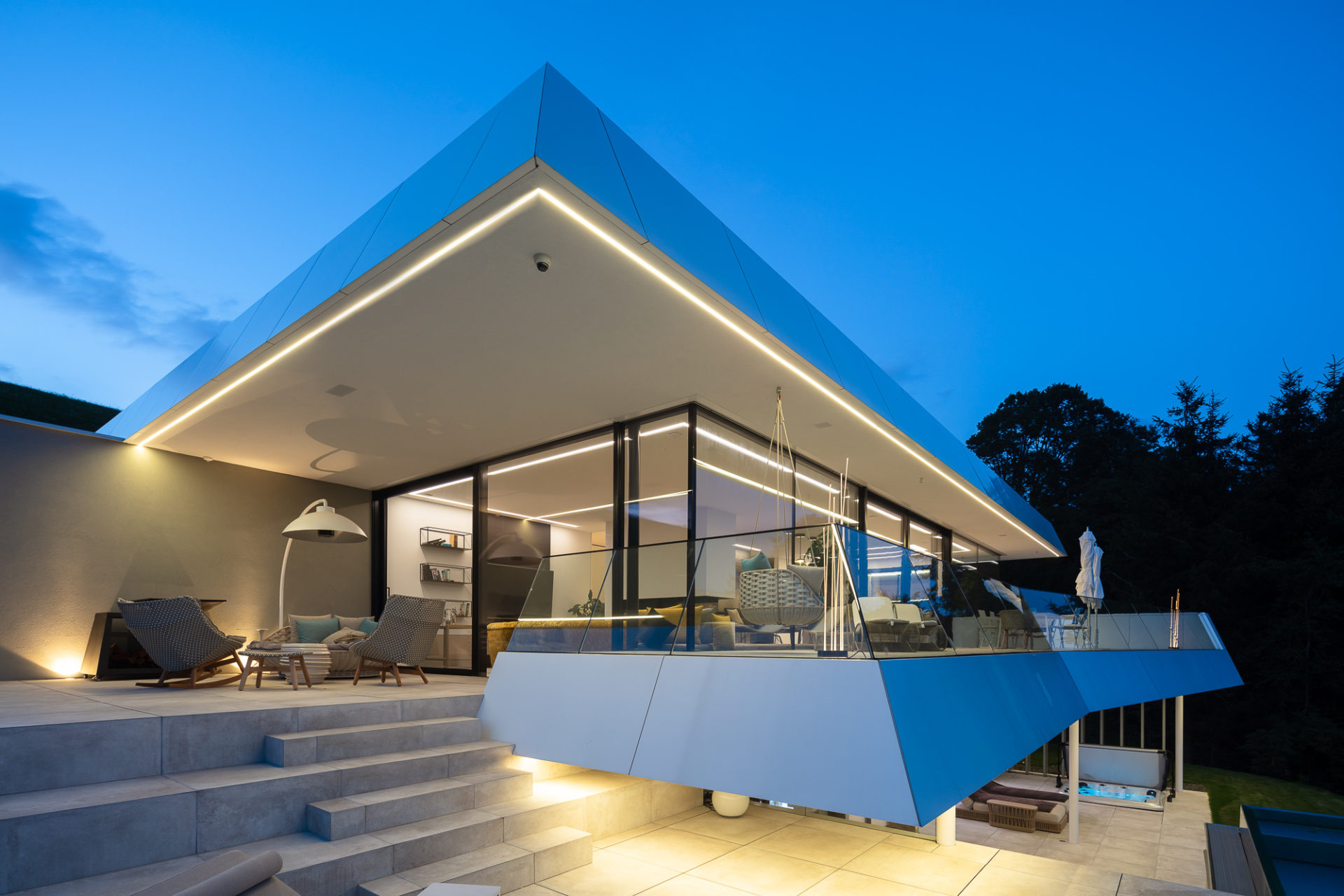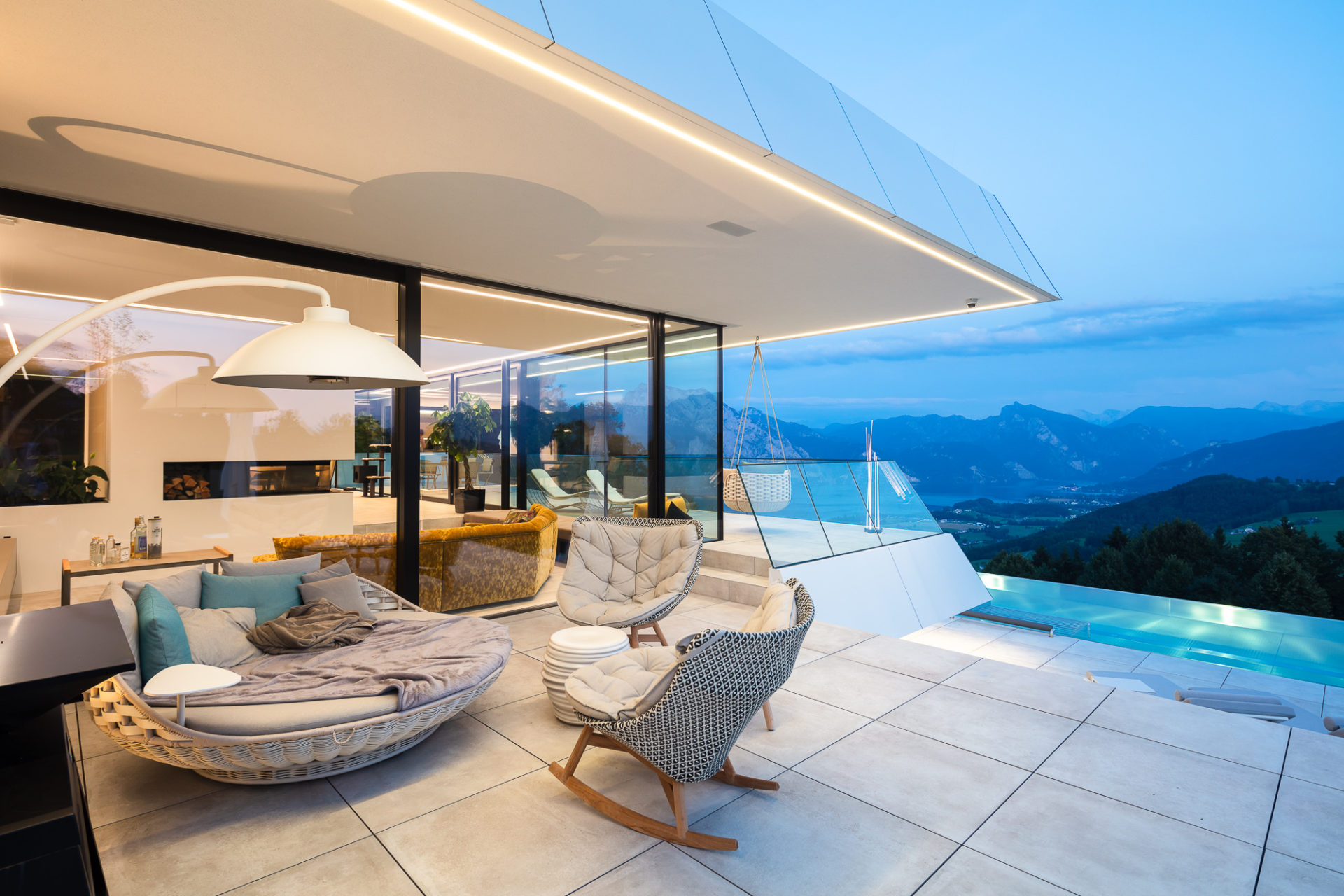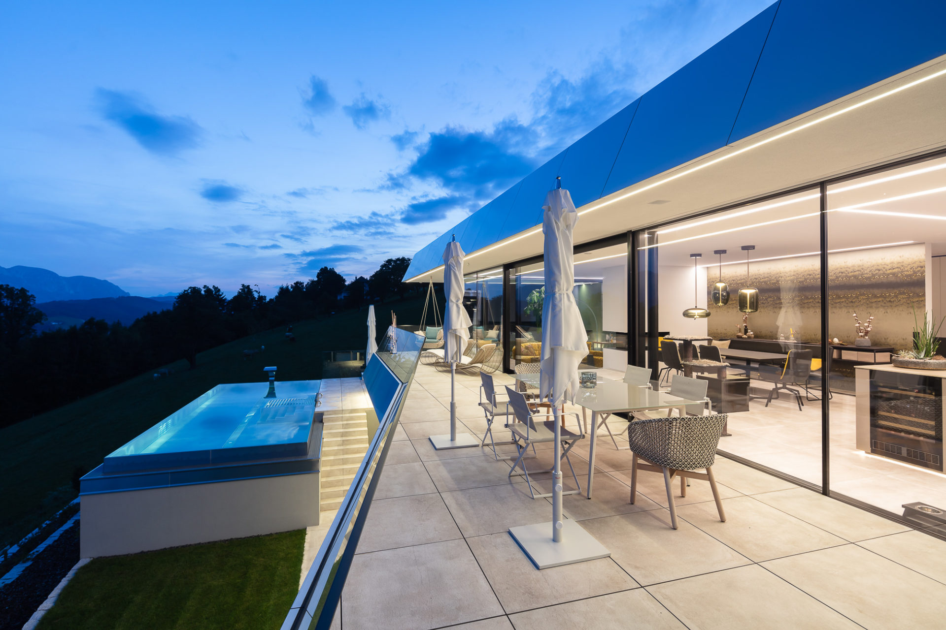 Terrasse mit Rahmenlosen Einbaulautsprechern mit Wetterveredelung für den Außenbereich - © Möblierung: MILD GmbH & Co KG