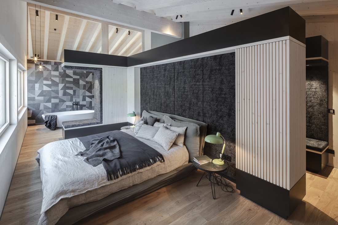 unsichtbare Lautsprecher im Schlafzimmer, realisiert in der Decke - © Möblierung: MILD GmbH & Co KG
